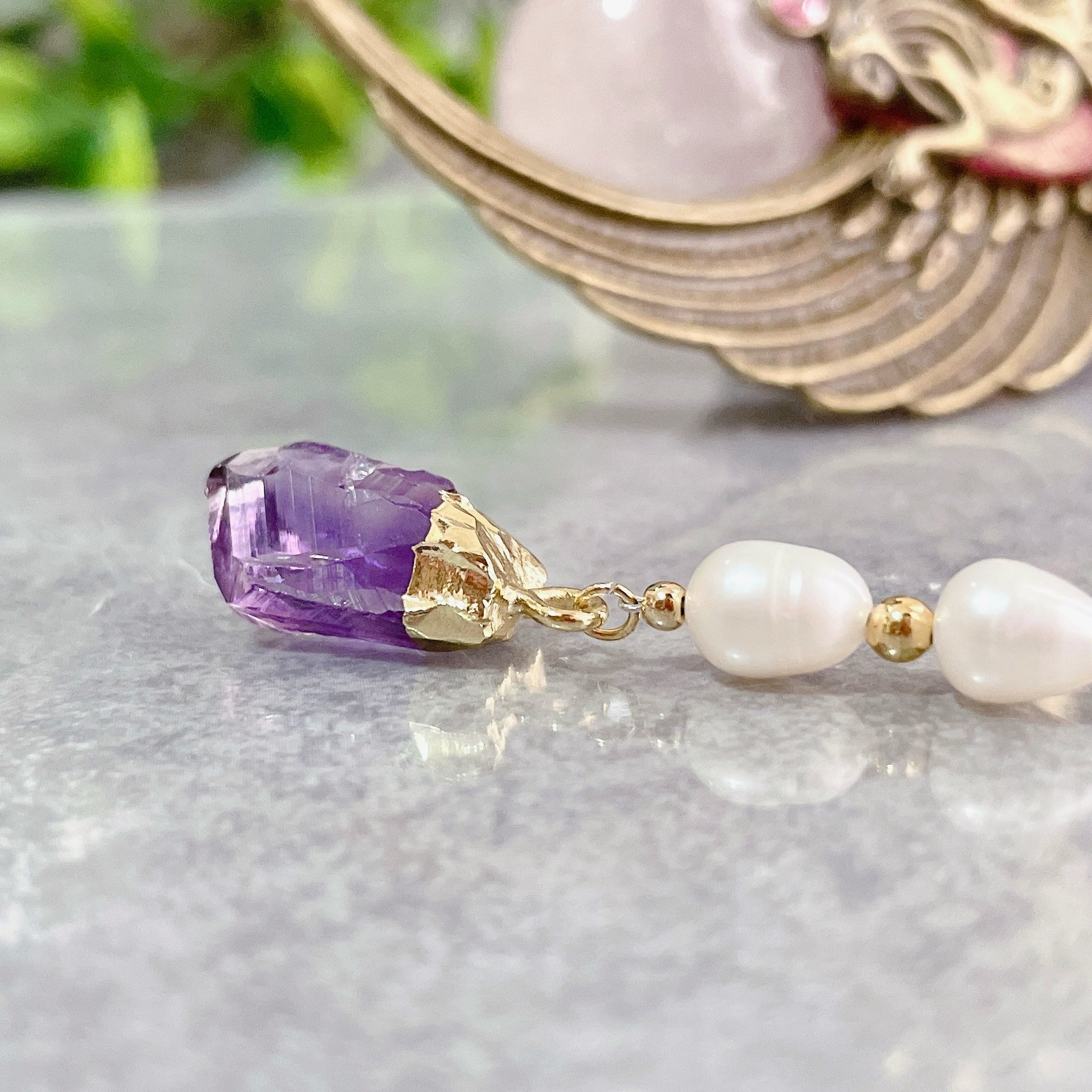 アメジストと淡水パールのチャーム/天然石チャーム