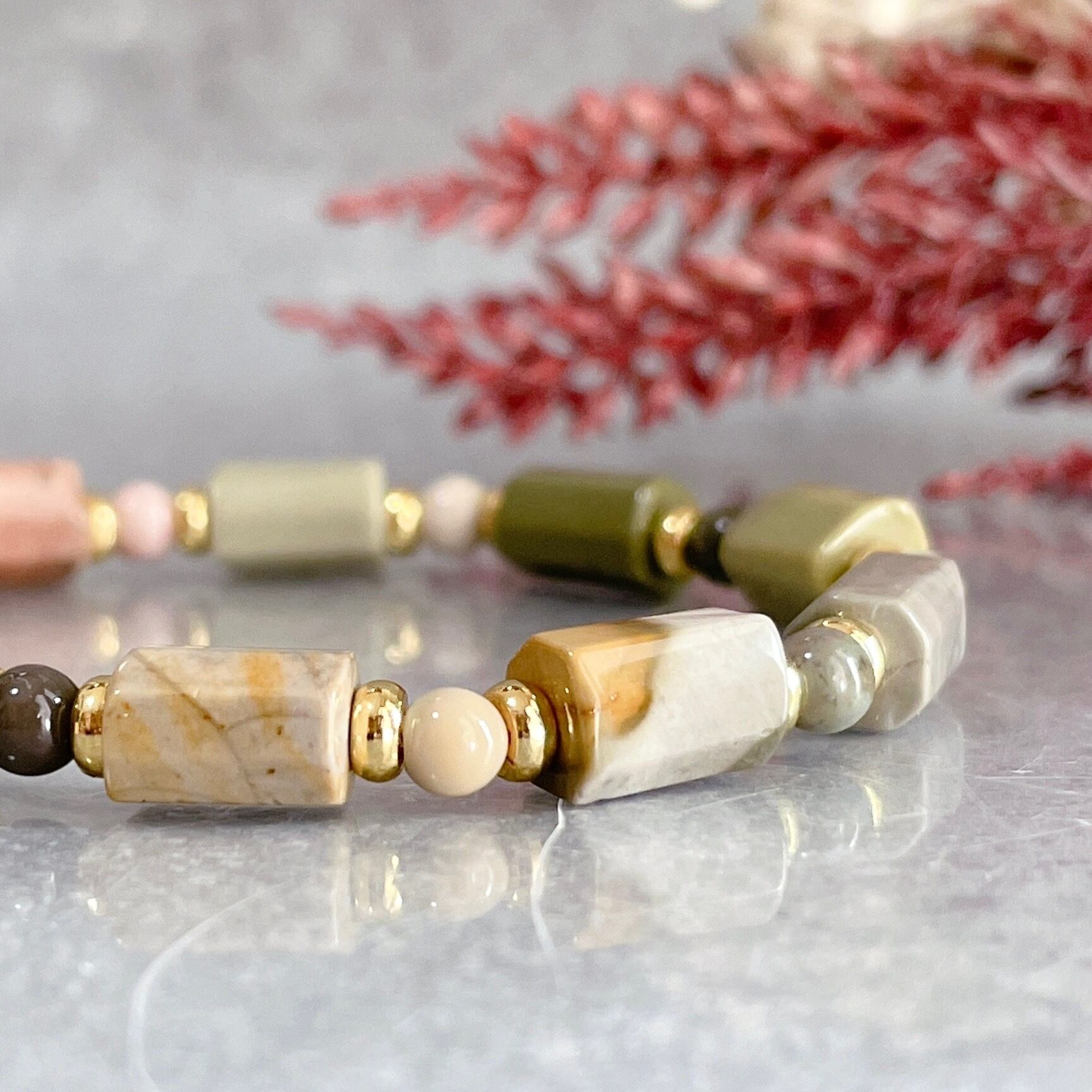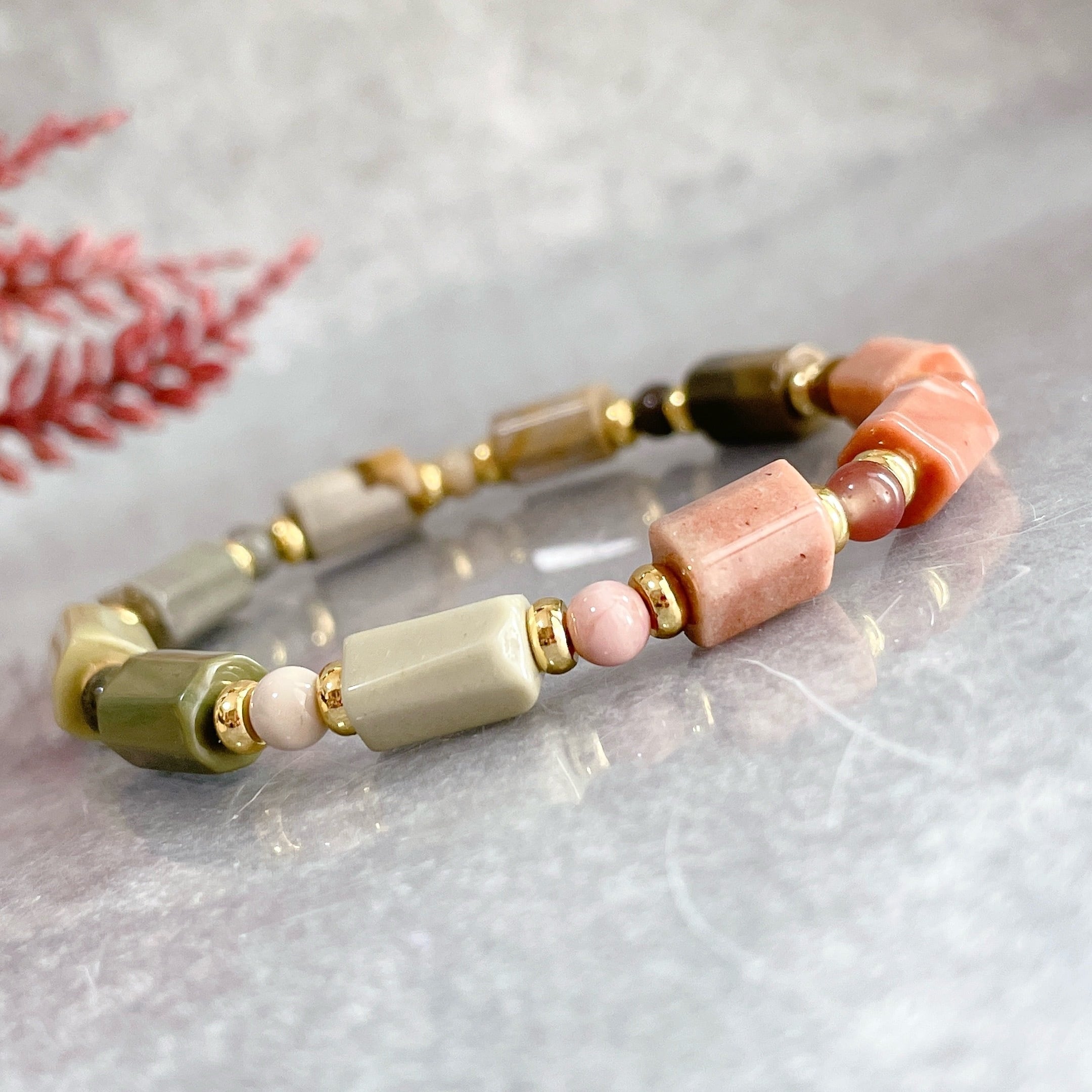 天然石 天然石ブレスレット デザインブレスレット ハンドメイド 天然石アクセサリー アクセサリー プレゼント 誕生石 石好き 可愛いブレス ブレスレット天然石 瑪瑙 メノウ アゲート くすみカラー マルチカラー 天然色 筒型