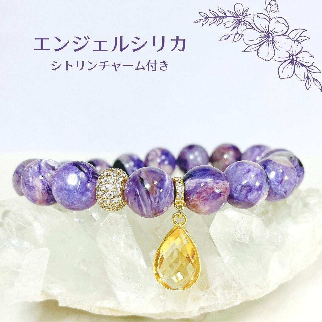 綺麗 キレイ きれい 大人可愛い 可愛い カワイイ かわいい お洒落 オシャレ 石 数珠 天然石 天然ストーン ストーン ブレスレット ブレス デザインブレスレット デザブレ バングル ハンドメイド 天然石アクセサリー アクセサリー シンプル カラフル 女子会 女子力 デート プレゼント プチギフト ギフト 贈り物 誕生日 StoneMountain ストーンマウンテン エンジェルシリカ チャロアイト 水晶 クリスタル 紫 パープル シトリン ペアシェイプ 黄色 イエロー 癒し 金運 世界3大ヒーリングストーン レア天然石 希少